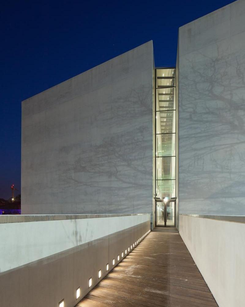 Szczelina przechodząca przez środek bryły ICHOT-a kieruje uwagę na to, co znajduje się za nią - na historię. Mocne oświetlenie szczeliny podkreśla jej rolę. Jednakową zasadę zastosowano przy oświetleniu zygzakowatego chodnika prowadzącego do I ze szczeliny. W nawiązaniu do dominanty kompozycyjnej w budynku pojawiają się oprawy wpuszczane tworzące szczeliny w ścianach I sufitach. W pomieszczeniach biurowych I użytkowych zawisły oprawy o technicznym wyglądzie I funkcji.